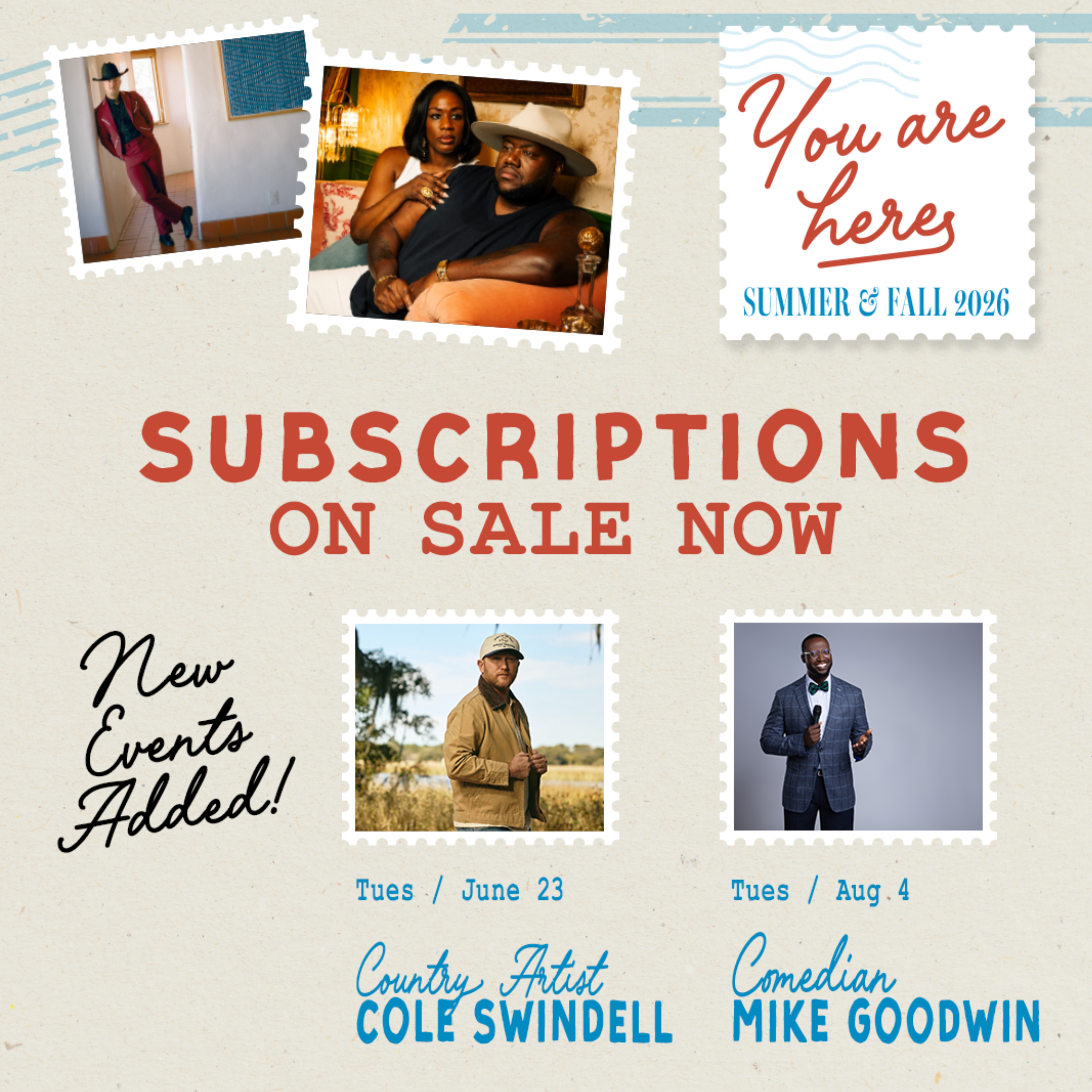 Sign up for weekly e-newsletters and be the first to know about event announcements, tickets, and more!