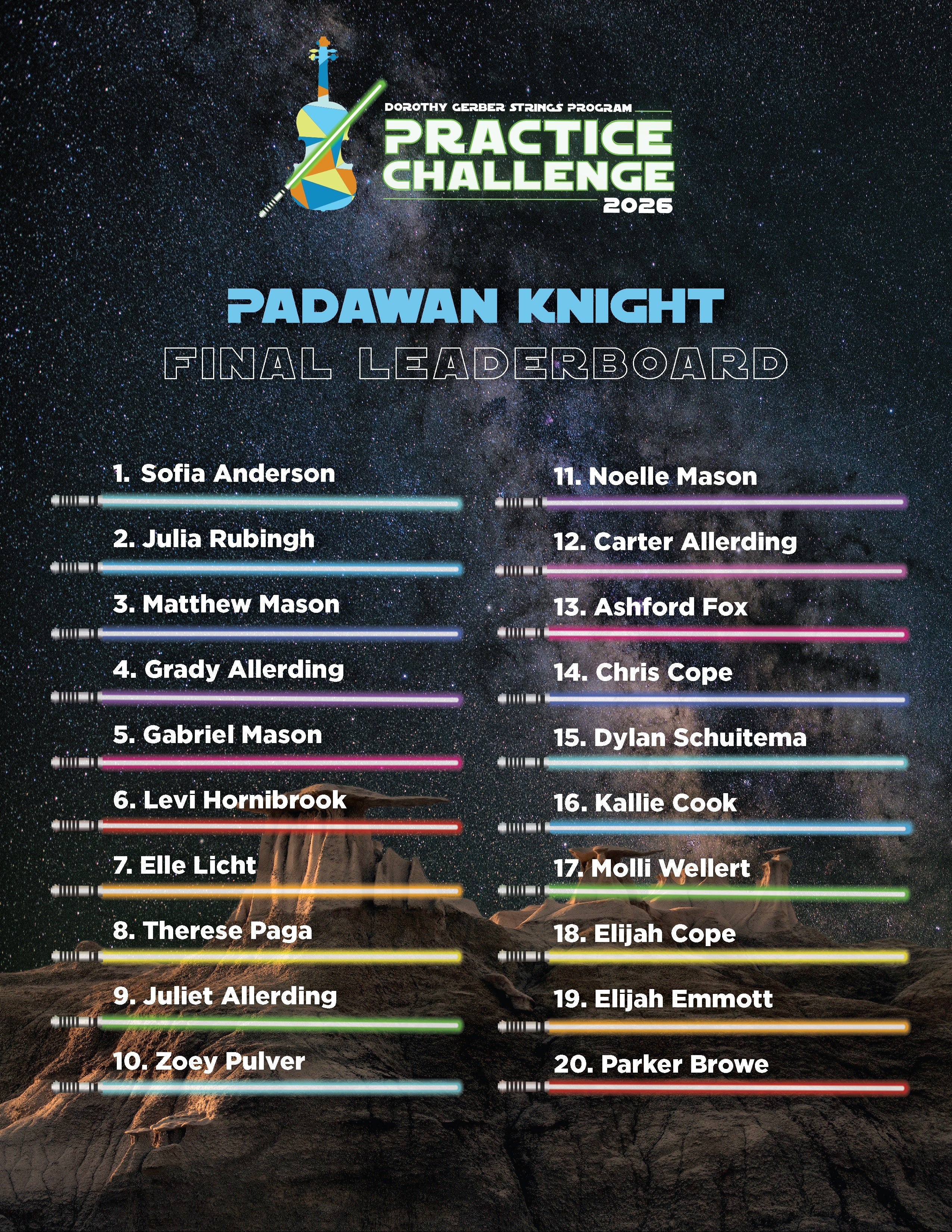 Mark your calendars! Final results will be revealed during the DGYO Concert on March 23 —where we’ll celebrate the dedication, discipline, and growth of our rising Jedi musicians.