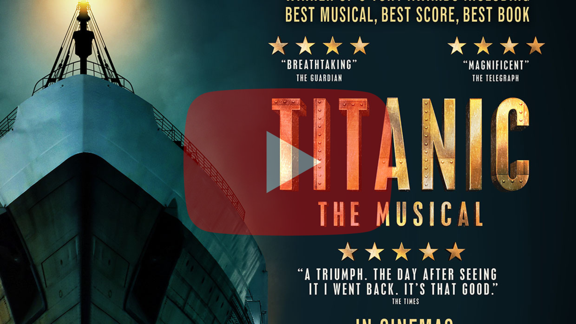 With music and lyrics by Maury Yeston and a book by Peter Stone — the pair have collectively won an Academy Award, an Emmy Award, an Olivier Award, and three Tony Awards. The original Broadway production of Titanic: The Musical won five Tony Awards®, including Best Musical, Best Score, and Best Book. This stunning production, captured live on stage for cinema screenings, celebrates the 10th anniversary of its London premiere, where it won sweeping critical acclaim.